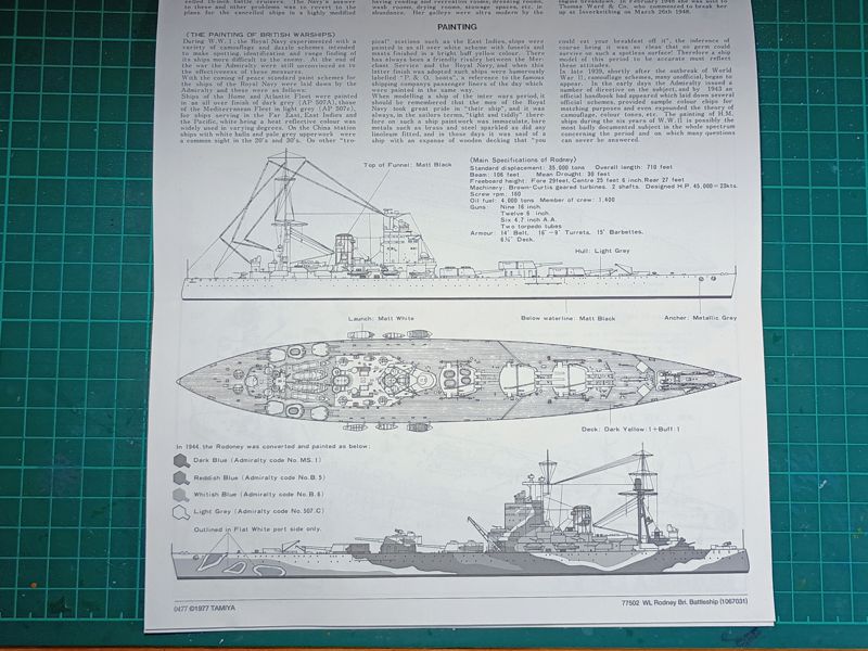 Este buque siempre me ha llamado la atención, quizás por sus curiosas formas, con las tres torres a proa que lo hacen ver tan singular. El kit de Tamiya es una calidad excelente para su época, similar en tal sentido a los que utilicé en su momento par construir el Hood y el Prince of Wales. Para completarlo he adquirido el set de fotograbados de White Ensign Models, muy completo y diseñado para este kit. La versión que nos ofrece Tamiya es la original del acorazado, sin embargo, voy a representarlo en configuración de Mayo de 1941, durante la caza del alemán Bismarck. Para ello, deberé hacer algunas modificaciones, que les comparto más abajo.