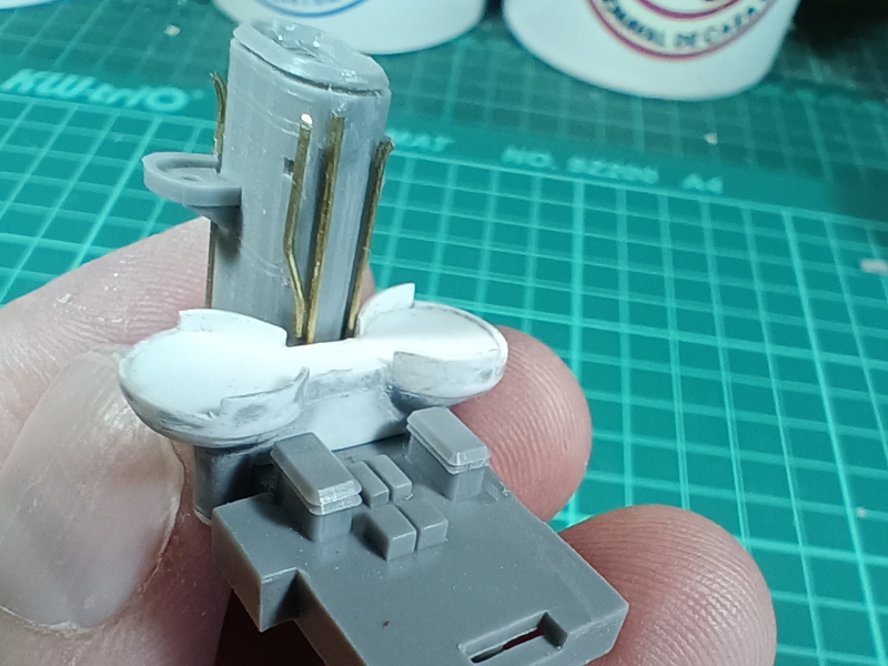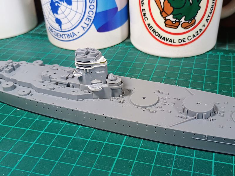 Como dije más arriba, he decidido construir el buque en su version de Mayo de 1941. Entonces, debo realizar algunos cambios en la maqueta. Los primeros de ellos se encuentran sobre el puente de mando, el cual sufrió varias reformas durante la década del '30. En estas fotos les comparto los detalles del kit y las primeras modificaciones en el puente. Más adelante deberé realizar otros trabajos sobre el resto del acorazado.