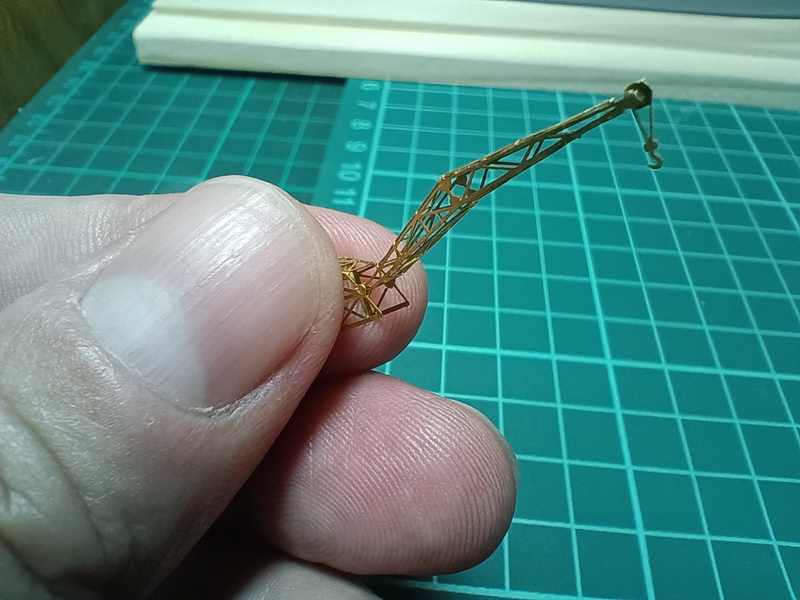 Tras completar las primeras modificaciones en el puente de mando, proseguí con las tareas estructurales. El mayor desafío fue la construcción desde cero (scratch) de la plataforma para los cañones antiaéreos óctuples Pom-Pom. Ubicada a proa de la chimenea, la fabriqué utilizando plástico de alto impacto y foam board. Asimismo, reemplacé las tuberías originales de la chimenea por varillas de latón para ganar realismo. Finalmente, antes de iniciar el detallado con fotograbados, construí las protecciones de la artillería antiaérea de popa.