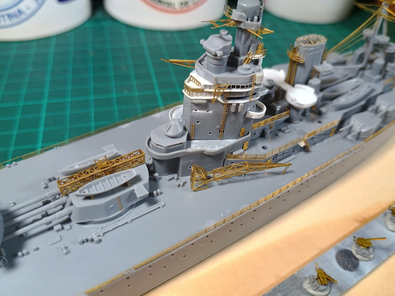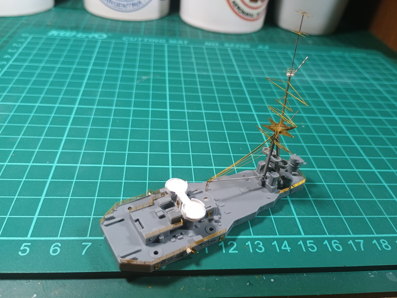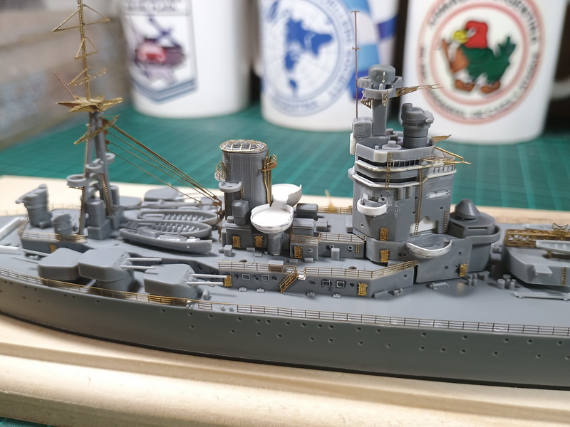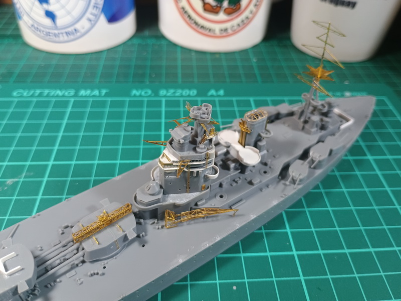 For the detailing phase, I used the WEM (White Ensign Models) photo-etch set. As expected from this brand, the quality is outstanding; while some components—like the masthead star and the Pom-Pom mounts—are quite intricate to assemble, the rest of the set is very user-friendly. To recreate the quadruple Vickers guns mounted on the bridge wings, I dipped into my spares from the British destroyer PE set, from WEM too, that I previously used for the ARA Buenos Aires. With the structural reforms and detailing now complete, the model is ready for the paint shop.
